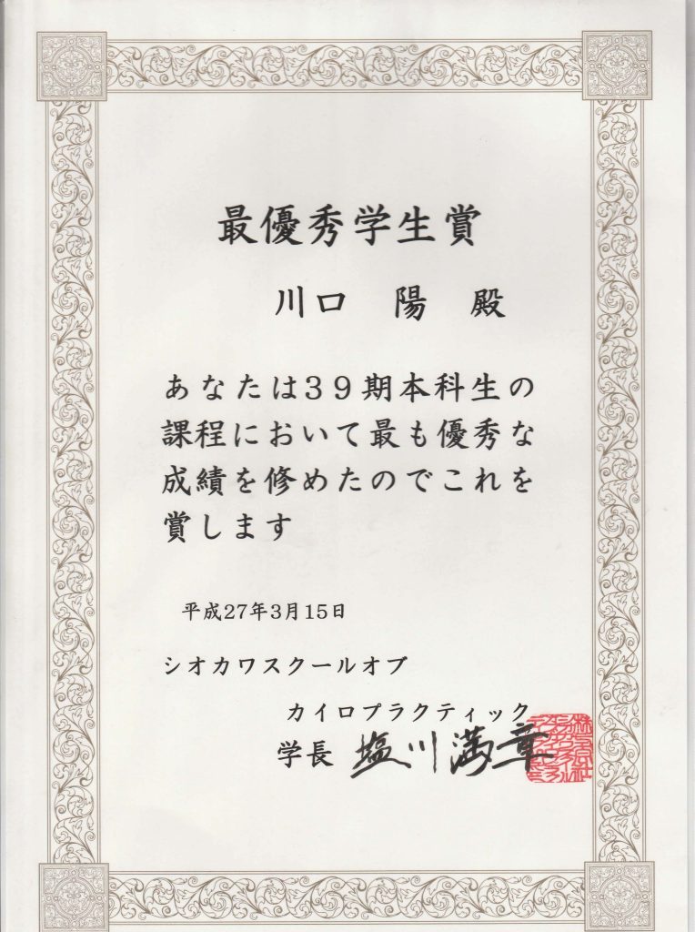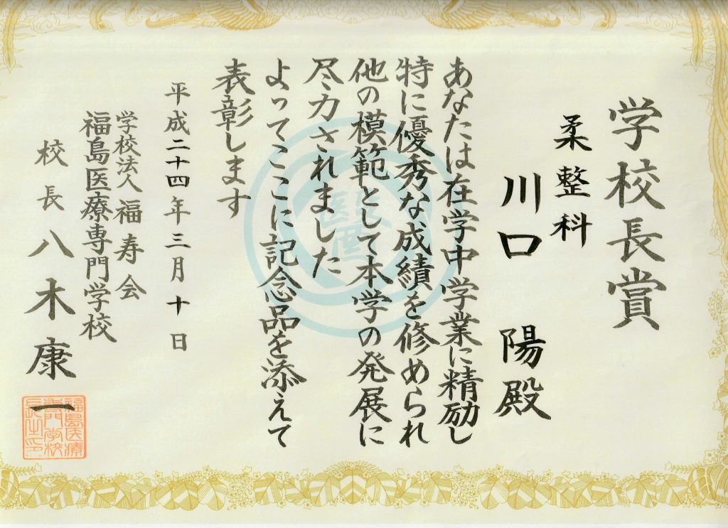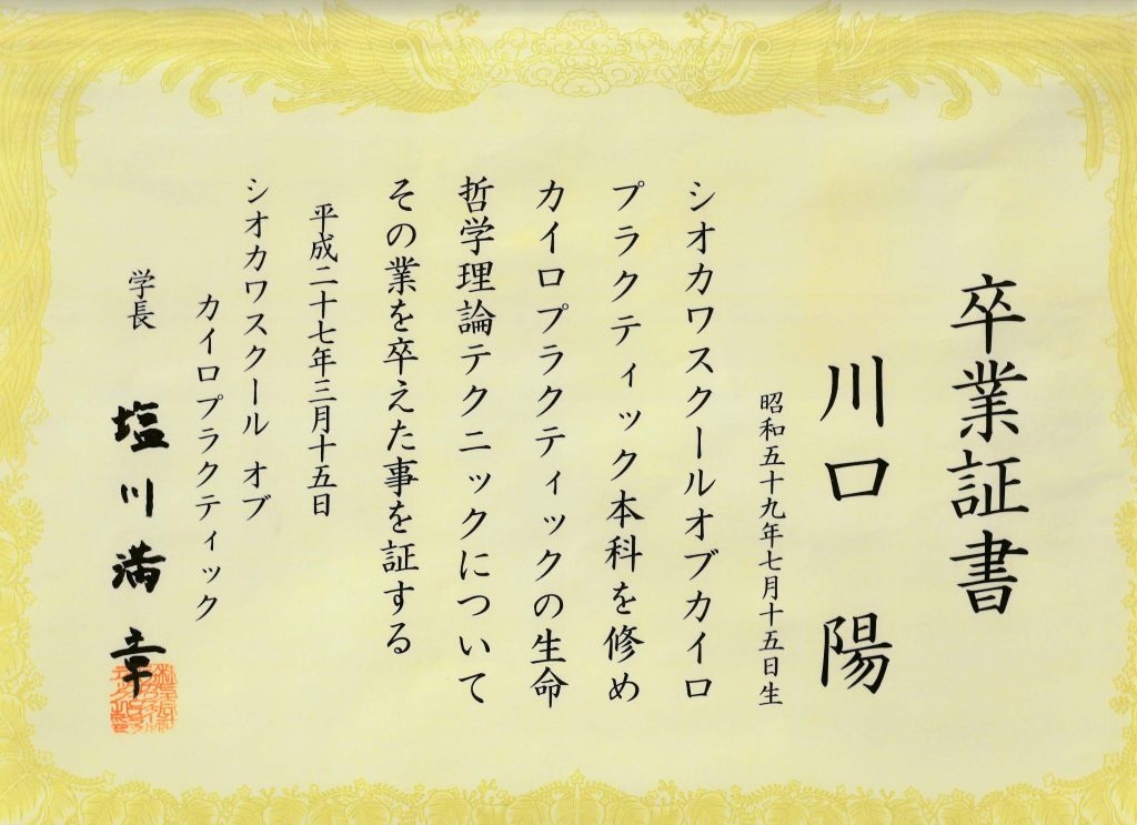 初めまして、会津若松市にあります「あいづ徒手療法室(旧あいづカイロプラクティック)」の川口です。